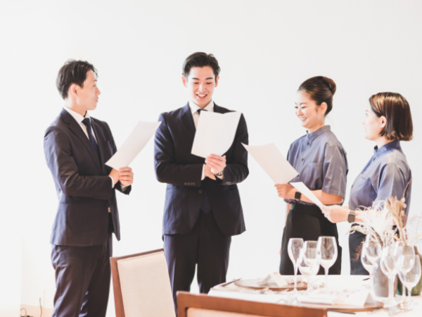 乾杯準備の際、親族様が「どなたかの写真」をテーブルに置かれた時、そっとグラスを用意し乾杯酒を注ぐ。前菜を左手で召し上がっていたらナイフ・フォークを並べ替える。ただお料理とお飲み物をサービスするだけではなく、新郎新婦様の手となり足となり、同じ想いですべてのゲストに「最上級」のおもてなしを提供してください。